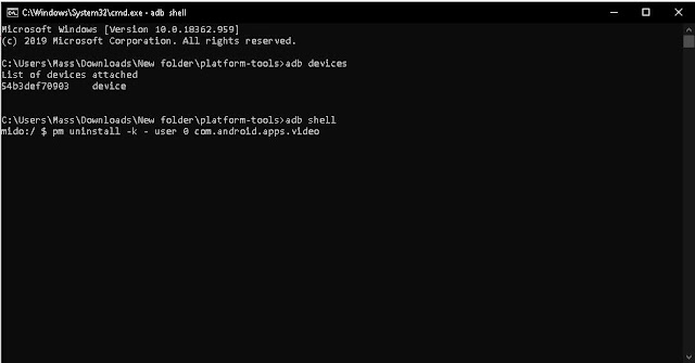 pm uninstall -k --user 0 com.huawei.videoeditor